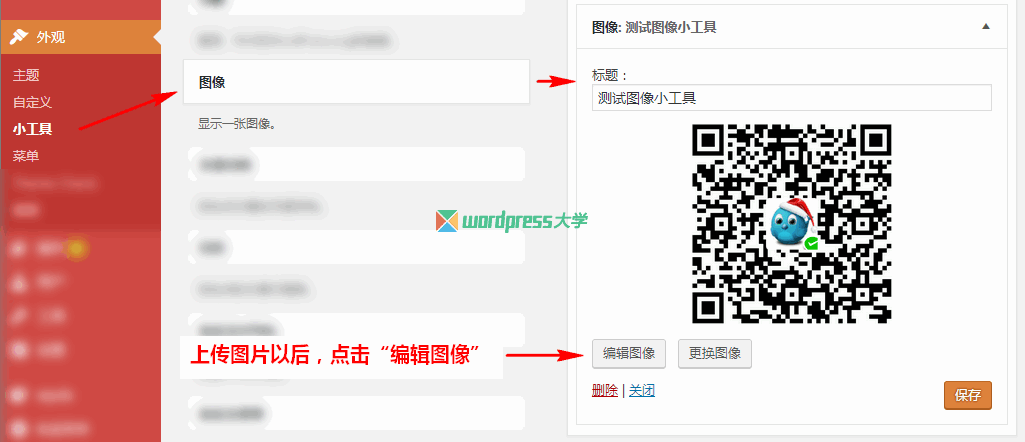 在外观 – 小工具 中,添加图像小工具到任何侧边栏,上传了一个图片: