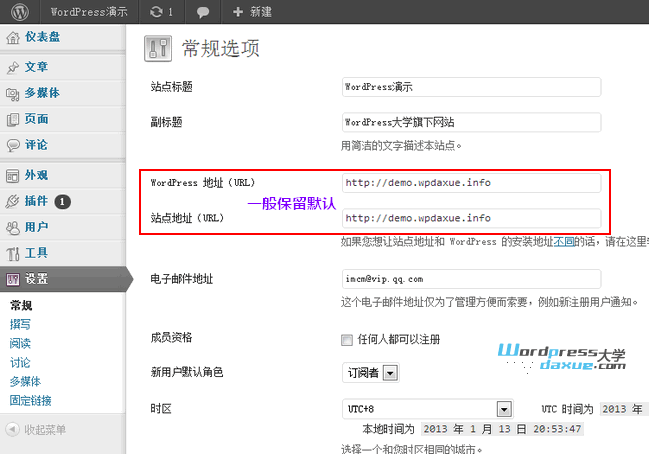 都很简单,只需注意,一般不要更改 WordPress 地址 和站点地址,除非你要换域名